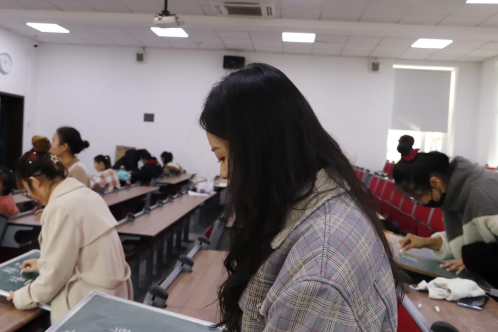 比赛正式开始前,工作人员对所有参赛同学进行签到、引导工作并将比赛内容用屏幕展示。比赛正式开始后,钢笔字、粉笔字大赛同步进行,参赛同学均认真完成其参赛作品。待同学们完成作品后,工作人员依次拍照记录、收集作品。赛后,将由评委对参赛作品进行评分工作并选出优秀作品颁发证书及奖状。