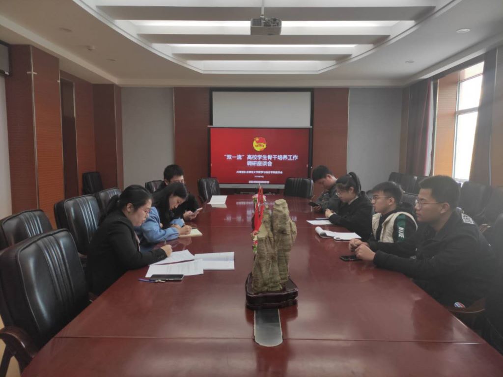 2020年10月20日,由数学与统计学院学生党务服务中心培训实践中心承办的“双一流”高校学生骨干培养工作调研座谈会在学院二楼会议室圆满结束。参与本次活动的有团委书记李娜和学生党务服务中心培训实践中心全体成员。