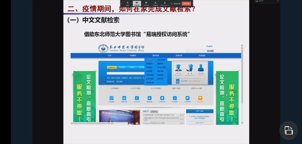 通过这次的培训,同学们对于怎样利用网络快速找到自己所需要的文献都有了一个更加清晰的认知,也为大家居家开展科学研究打下了基础,希望同学们在以后的科研实践中,都可以充分利用自己可获取的资源,取得更多更好的科研成果。