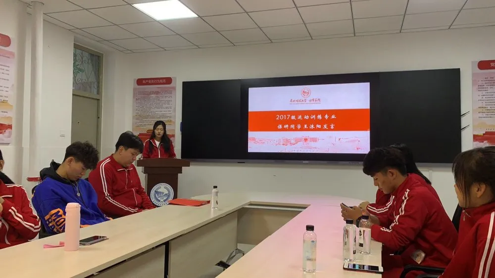 2017级运动训练保研同学在241教室与2018级运动训练专业同学进行座谈。