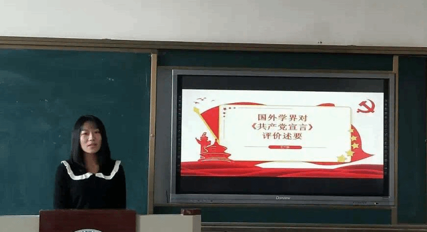 接着分享的是秘书处的王文静同学,王文静同学结合自身专业特点,依照国外学界的“左派”、“中派”、“右派”三大派别对《共产党宣言》思想的历史贡献和历史局限所作的不同评价和研究,与大家进行分享交流。同时也向大家推荐了许多国外学者的经典著作,如《历史与阶级意识》、《社会主义在今天意味着什么》、《论现实存在的马克思主义》、《马克思为什么是对的》等,为大家审视和研究《共产党宣言》提供了新的视域空间。