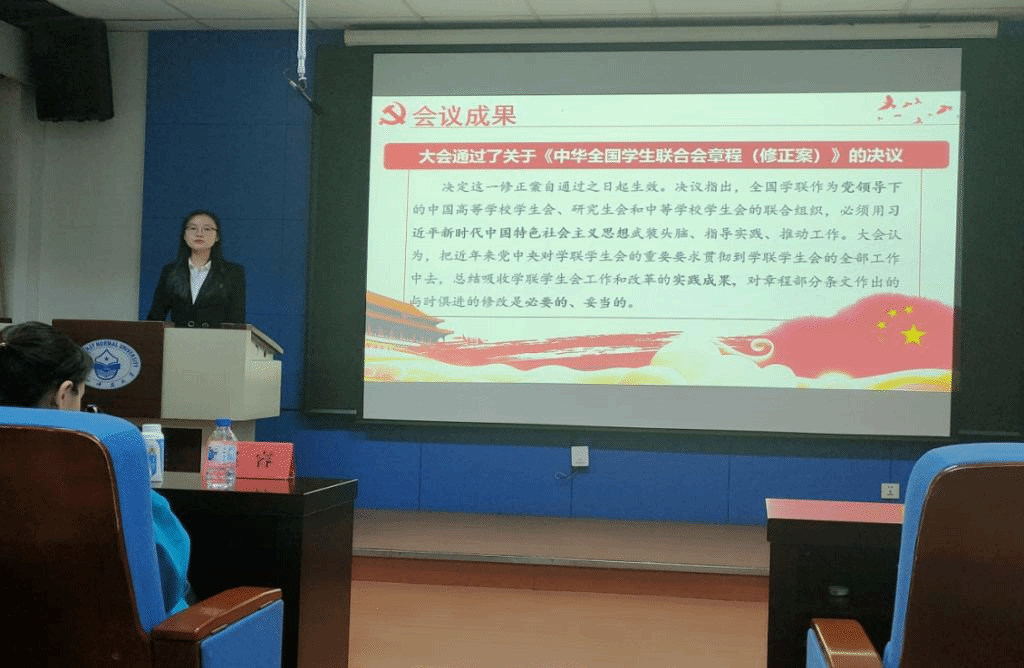 首先,在主会场汇报中,2019级入党积极分子带领我们从全国学联二十七大会议概况、大会的核心精神、取得的三项成果及重要意义、优秀青年典型代表、新时代青年的奋斗目标等六个方面进行了学习。