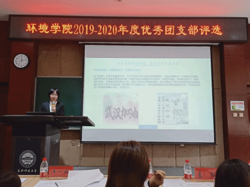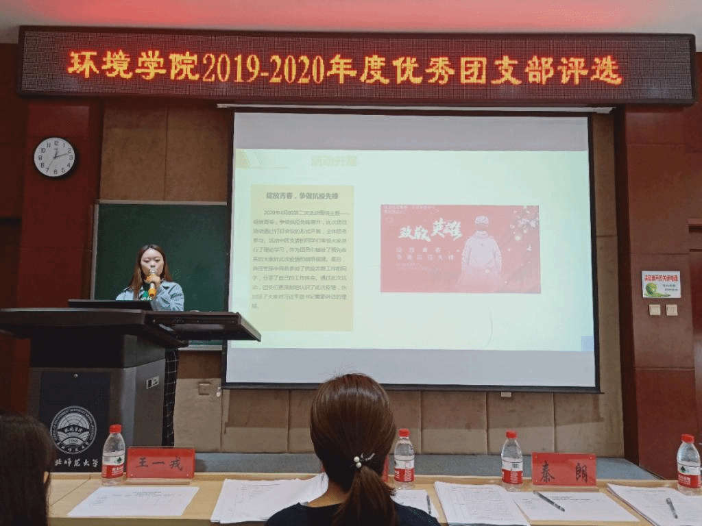 10月12日,由环境学院团委举办的“2020年秋季学期优秀团支部评审会”于216教室成功举办,到场嘉宾有团委书记王隽媛老师、2017级辅导员王一戎老师、2018级辅导员秦朗老师。