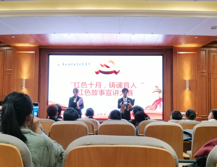 比赛开始前由学研部带来“红色十月,铸魂育人”诗朗诵,引出本次大赛的主题,比赛正式开始,由参赛选手们进行慷慨激昂的红色故事宣讲。