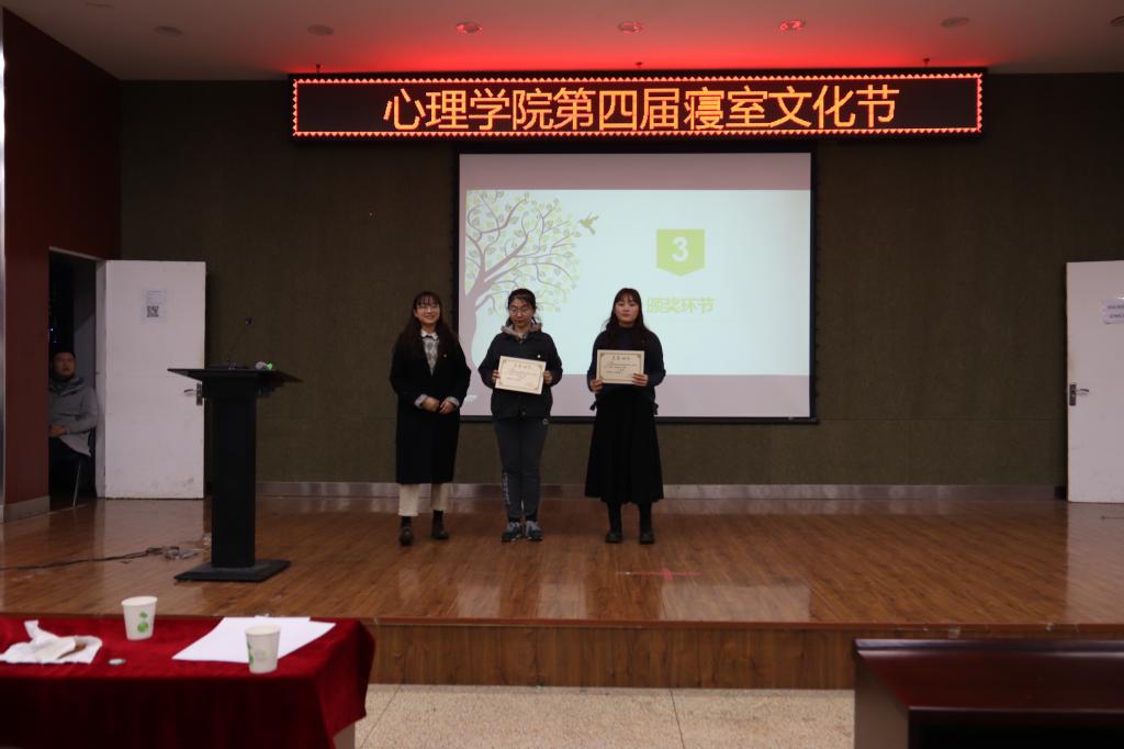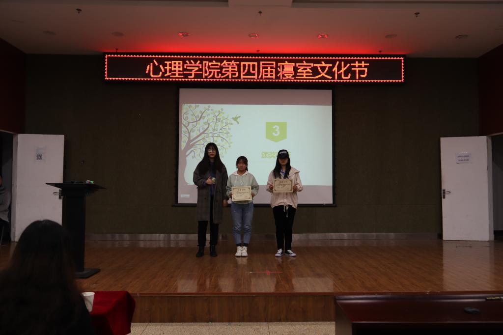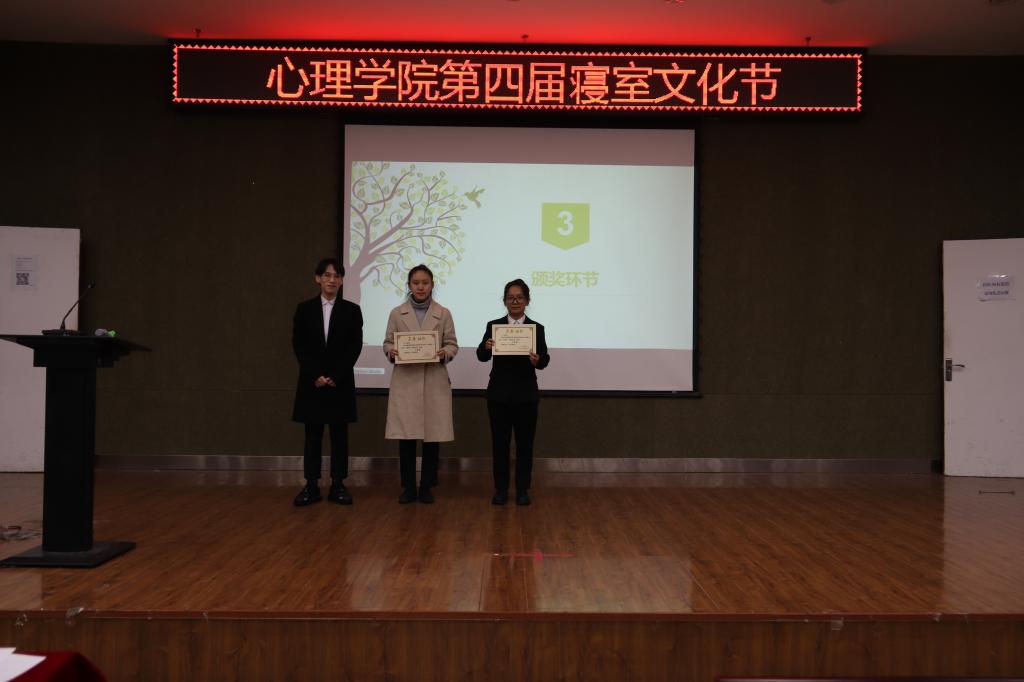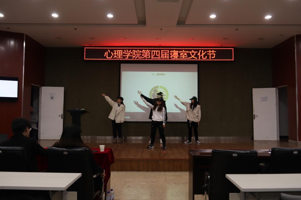 展示环节,晋级寝室代表依次上台,通过vlog、快闪、演说等多种形式对寝室进行介绍,不仅向我们展示了积极健康的生活方式,而且带来丰富多彩的才艺表演,充分展现出心理学子的朝气和活力。其中,1820寝室以视频形式呈现了她们精致的寝室设计,1609等寝室的介绍条理清晰又不失诙谐幽默,严谨而活泼的寝室氛围让人耳目一新。1714寝室以 vlog形式记录寝室成员的日常生活,虽然是两个年级混寝,但我们从点滴中看出她们之间的团结友爱、互帮互助。