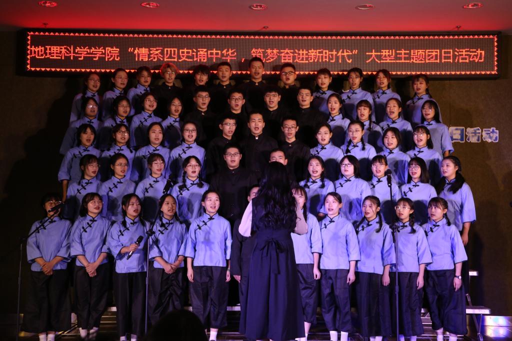 本次团日活动由地理科学学院的同学们通过合唱、舞蹈、朗诵和舞台剧表演等形式来抒发爱国热情,传播红色文化。活动中,各团支部分别选取了有关党史、国史、改革开放史和社会主义发展史的爱国歌曲进行合唱。活动现场气氛热烈,同学们动人的歌声以及优美的舞蹈给在场的观众们带来了一场视听盛宴。在活动的最后,经过专业评委打分,评选出了一、二、三等奖与单项奖,现场嘉宾为获奖团支部颁发了奖励。