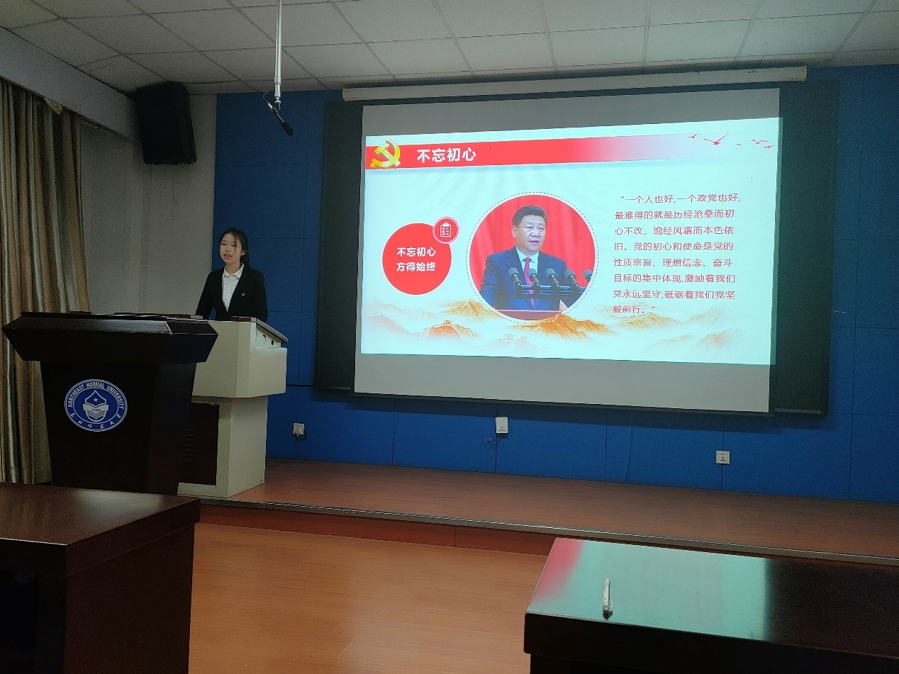 汇报人闫雪莹为我们讲述了党的使命初心与信仰信念,作为新时代青年的我们,应紧密地团结在以习近平同志为核心的党中央周围,时刻“不忘初心,听党话、跟党走”。只有这样才能树立远大的理想目标,在祖国的万里长空放飞青春梦想,在中国梦的世纪荣光中昂扬奋进!
