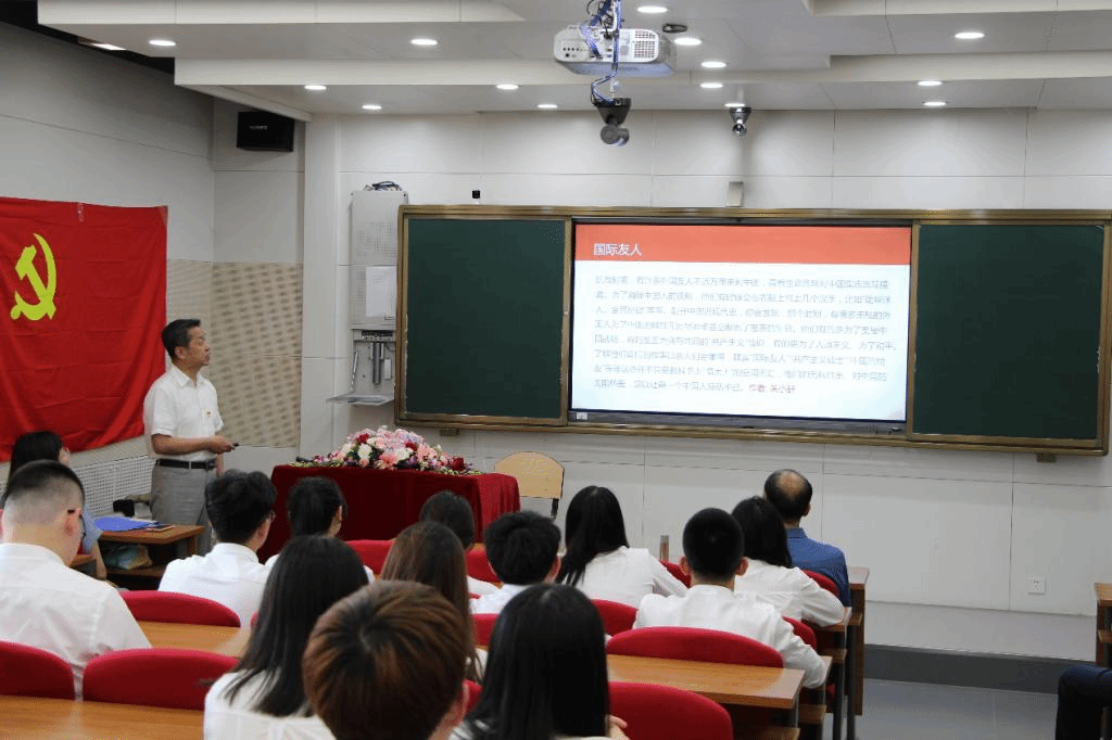 在宣誓仪式结束后,罗格斯大学纽瓦克学院中方院长张绍杰同志讲授了以“党史中的国际友人”为主题的党课。他为我们介绍了中国共产党诞生的国际背景,以及在中华民族解放事业中所涌现出来的优秀国际友人代表和他们的先进事迹。张绍杰院长又在随后的讲述过程中结合自身理解和体会,为党员同志们宣扬了“毫不利己、专门利人”的价值观,并勉励各位党员同志要向榜样看齐、脚踏实地、砥砺前行,继续为建设富强民主文明和谐美丽的社会主义现代化强国而不懈奋斗。