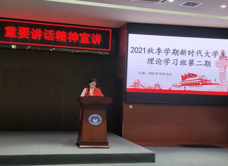 2021年10月10日,生命科学学院开展了本学期第二期大学生理论学习班,主题是“习近平总书记‘七一’重要讲话精神宣讲”。学院特地邀请了政法学院的孟白璐老师作为本次学习的主讲人,旨在让同学们更好地理解我们党百年来的伟大成就,树立正确的党史观。