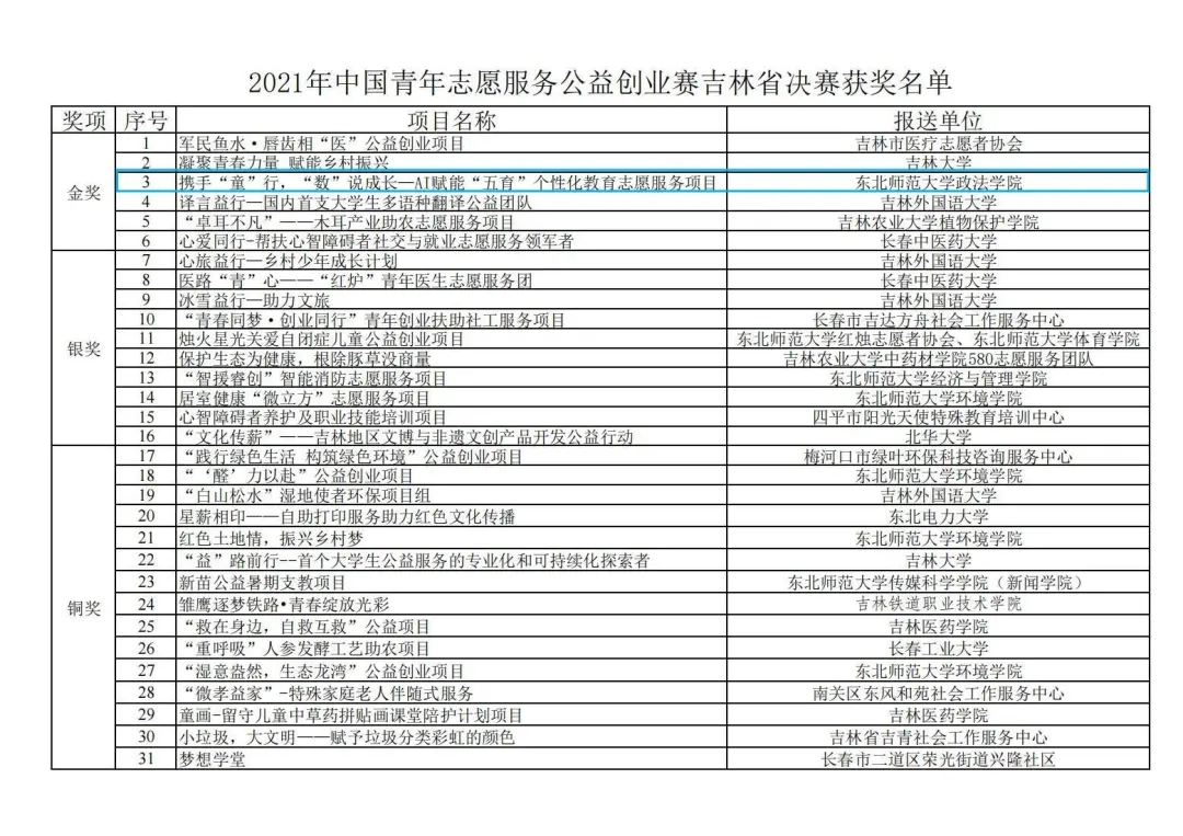 为深入学习贯彻习近平总书记关于志愿服务的系列重要指示精神,落实团中央对青年志愿服务公益创业比赛工作的重要部署,提升青年公益创业能力和创新精神,2021年9月25日,第五届中国青年志愿服务公益创业赛吉林省决赛于线上顺利举行。