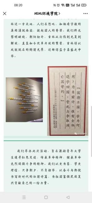 早春四月,燕语呢喃,绿意新染。2021年4月11日上午,东北师范大学环境学院青马学会组织全体成员前往吉林省博物馆,参观“破晓--吉林人民革命斗争史陈列”。正值建党一百周年之际,我们跟随展馆内丰富的展品展示,感受了人民解放的波澜壮阔。