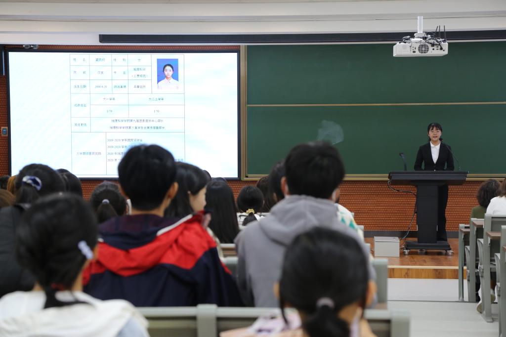 9月14日,由地理科学学院秘书处举办的2021年学生代表大会暨第九届学生会主席团换届竞选会在地理大教室圆满结束。出席本次活动的嘉宾有地理科学学院党委副书记、副院长陈静老师,团委书记沈雯老师,2019级辅导员隋蕙咛老师,2019级辅导员姚佳老师,2020级辅导员董文标老师,2021级辅导员张婧宁老师以及地理科学学院优秀学生代表。