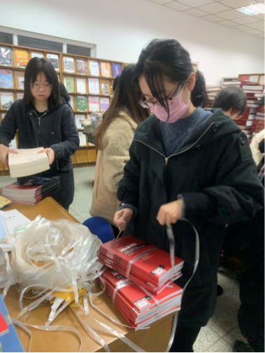 (学生将古籍上架)