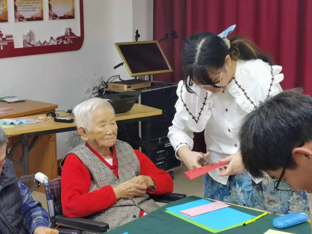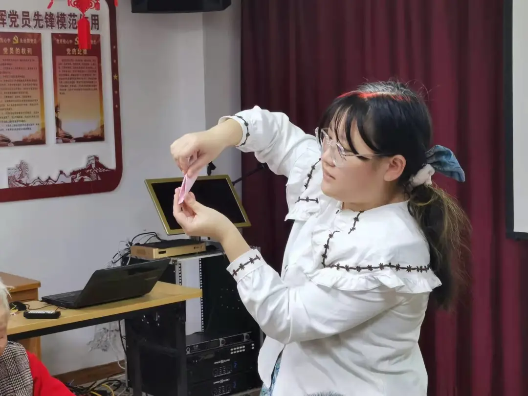 此次授课主题为“创意剪纸”,旨在教会老人剪“囍”“团花”等图案,让老人充分感受传统工艺之美,并祝福老人幸福安康,为老人送去冬日温暖。