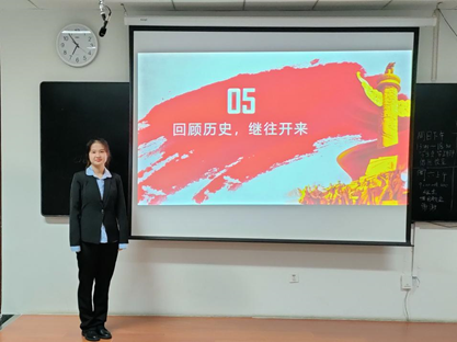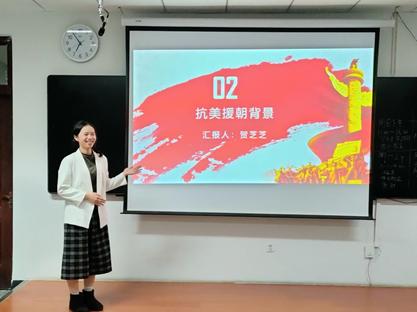 “回顾历史,继往开来”——汇报人王玮祎阐述了于新时代学习抗美援朝精神、志愿军精神的重要意义。身处于百年未有之大变局,我们更要铭记历史,把握当下。不仅要学习志愿军捍卫祖国安全和世界和平的坚强意志,更要传承和弘扬他们不畏强权和敢于反抗的斗争精神,并为推进新时代伟大事业不懈奋斗。