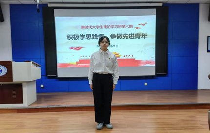 马2021年11月21日18:00,生命科学学院2021年秋季学期第六期大学生理论学习班于学院六楼报告厅展开。本次理论学习班的主题为“积极学思践悟,争做先进青年”,六位2020级汇报人围绕“有理想”、“有追求”、“有担当”、“有作为”、“有品质”、“有修养”六个方面进行了精彩的分享汇报。