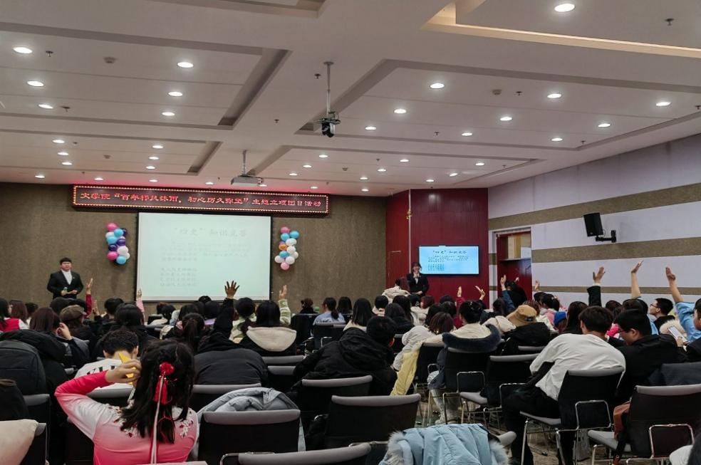 互动环节“四史”知识竞答:回顾党史,重温百年风华。同学们积极抢答,活动现场热烈非凡!