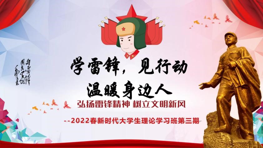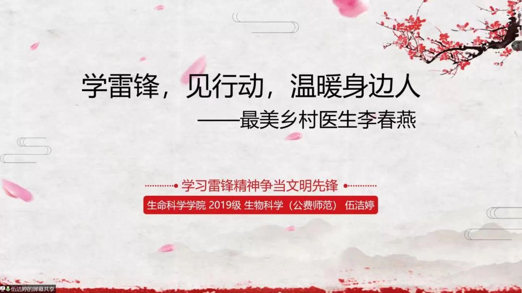 2022年4月17日晚18:00,生命科学学院2022年春季学期第三期新时代大学生理论学习班于线上召开。本次理论学习班活动主题为“学雷锋 见行动”。由五位2019级汇报人带领同学们进行学习。