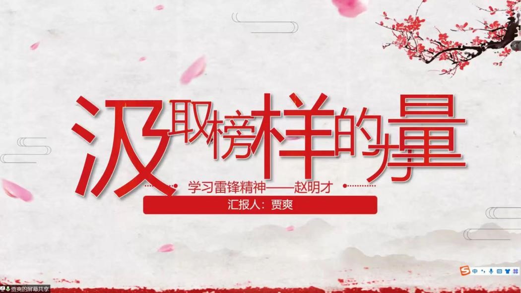 汇报人贾爽介绍的人物是雷锋的生前战友——赵明才。他是雷锋精神的传播者,更是当代的活雷锋。通过老先生六十年矢志不渝,点滴贯彻的生平事迹和影响,让同学们认识到弘扬雷锋精神有助于增强理想信念、保持党的先进性、践行社会主义核心价值观。