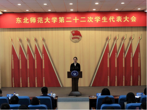 我院第九届学生会主席兼校学生会学研部副部长陈红宇同学在东北师范大学第二十二次学生代表大会暨第四十八届校学生会主席团竞选会上崭露头角,经过竞选演说、抽题作答、学生代表投票等环节,陈红宇同学在众多优秀候选者中脱颖而出,成功当选为第四⼗八届校学生会主席团成员!