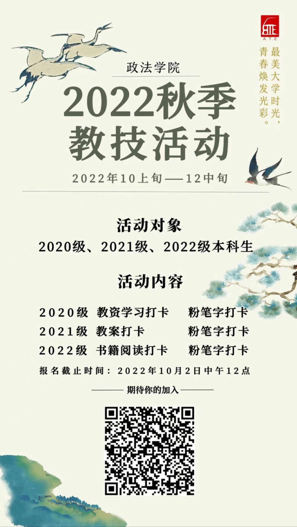 熟悉的校园,熟悉的秋日,政法学院教师教育协会第五届教技活动如约而至!在历届教技活动中,政法学院的学子们展现了独特的风采,用奋斗的姿态彰显青春的活力和生命力,用努力记录着成长,给我们带来了别样的惊喜。新一届的教技活动已经到来,我们期待能够在教技活动的新篇章中看到你绽放光彩的模样。