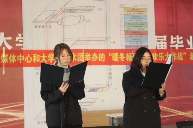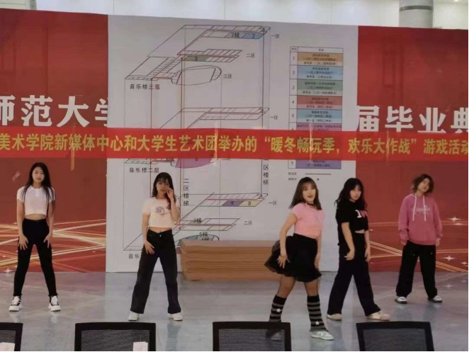 2022年11月19日下午,由美术学院新媒体中心和大学生艺术团联合举办的“暖冬畅玩季,欢乐大作战”活动在设计楼大厅圆满结束。本次活动旨在以游戏活动的形式拉近学生间的距离,为新生提供了沟通的桥梁,使同学们可以更快的适应大学生活,为寒冷的冬天带来温暖。