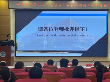 此次竞赛分为汇报展示和小组答辩两个环节,各小组汇报人向评审老师展示了项目的研究背景、研究意义和创新点。每组汇报结束后,评审老师针对该项目分别给出评审意见并进行打分。