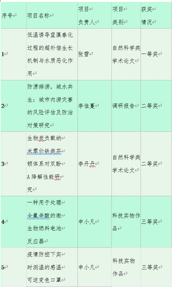 通过评审,环境学院第九届“崇学杯”科技创新创业作品竞赛的评比结果如下: