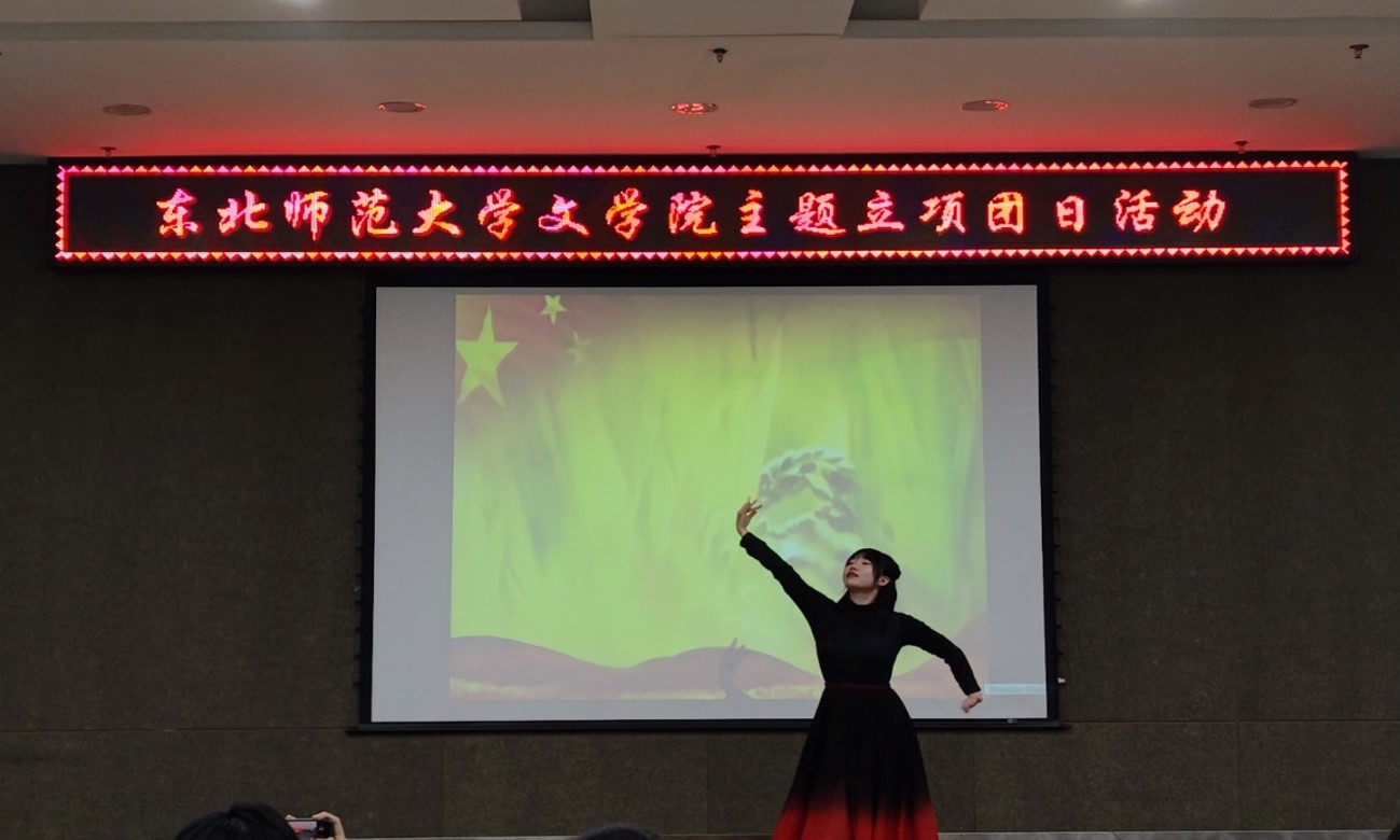 本次立项团日活动中,同学们采用了歌舞、乐器、小品等多种形式表达对党和国家的热爱,令我深受触动。我们有幸见证党的二十大胜利召开这一历史性的时刻,更要以奋斗之青春不负党和人民的厚望,我们要承载接续奋斗的时代使命与历史责任,把青春力量凝聚到时代梦想和美好前程中。