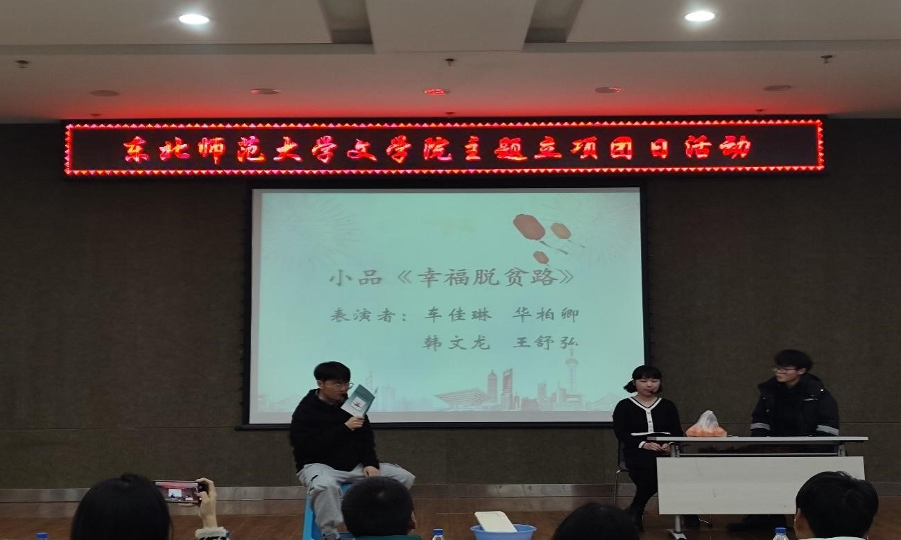脱贫攻坚播大爱,勤劳致富奔小康。致富政策民心凝聚,前程似锦无限风光。在同学们的精彩表演下,一幅基层干部心系群众、共赴幸福脱贫之路的画卷徐徐展开,这让同学们理解了脱贫攻坚的重大意义,使全场观众深受感染与鼓舞。