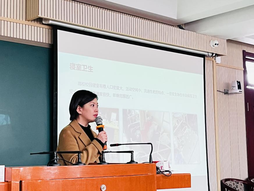 常睿老师用幽默的语言、温柔地话语、鲜明的例子分别从寝室卫生、寝室安全、寝室关系三方面阐述寝室文化建设。她指出:“宿舍生活是大学生活中非常重要的一部分,寝室长要起到带头作用,肩负起作为寝室长的职责,共同营造良好的寝室卫生环境。同时安全无小事,维护靠大家,每一位同学都应该加强对宿舍用电安全的重视程度,避免使用违规电器,做好宿舍安全管理。最后倡导同学之间和睦相处,团结友爱,互帮互助,真正做到用心、用爱沟通,寝室长要关注每位室友的心理、健康状态,合力创造一个温馨、舒适的寝室环境。”