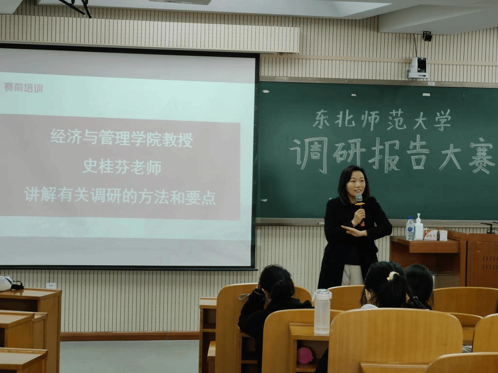 经济与管理学院教授史桂芬老师首先为同学们深入介绍了调研报告大赛的比赛性质以及重要意义,结合经济学相关知识,将调研的普遍方法娓娓道来,同时也兼顾了具体情况具体分析的方法,就同学们提出的情境进行分析。强调要围绕自身生活和兴趣,深入实际开展调查研究,以“梨树模式”为例,讲授如何制定调研计划。紧随其后的答疑环节更是极大地调动了同学们对调研大赛的兴趣。
