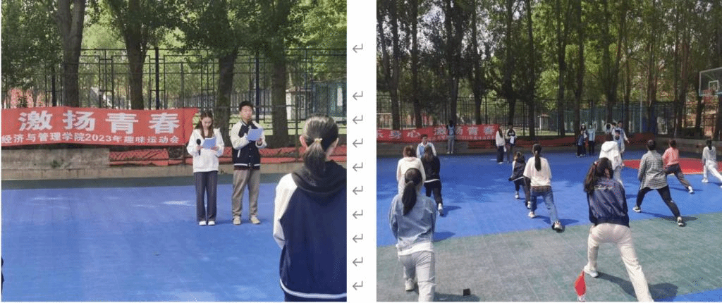 本次趣味运动会既有紧张刺激的竞技类游戏,如踩气球、袋鼠跳跳向前冲等项目,又有考验默契、趣味十足的合作类游戏,如跳大绳、车轮滚滚、协同作战、两人三足等项目。5月13日下午13:00,全体工作人员组织参赛同学们到操场指定地点集合,并进行了热身运动,在主持人开场介绍之后,活动正式开始。