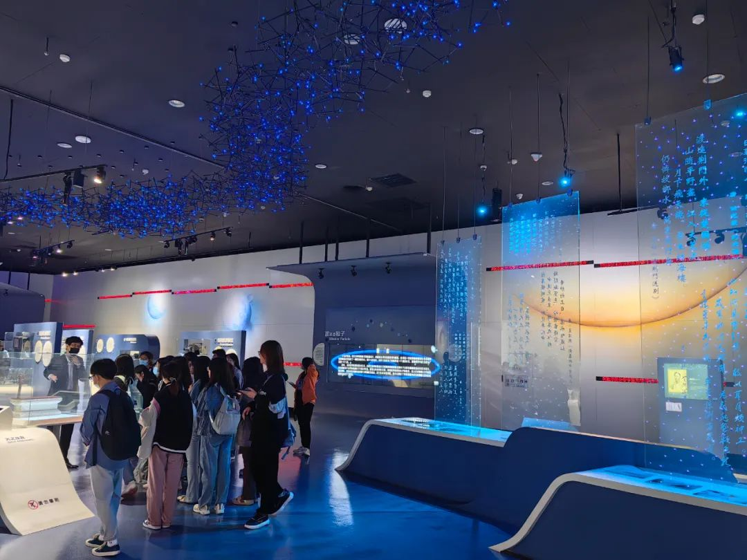 长春中国光学科技馆是中国唯一的国家级光学科技馆、中国第一个展示光学科技的国家级专业展馆。讲解员带领学员们在馆内依次参观了“奇妙之光”“千年光辉”“神州光华”“光的探索”“光的时代”“光彩世界”“光的未来”七个展厅。通过融于光影的互动式体验、绚丽的光学科技展品、丰富的光学理论知识,学员们亲身体验了一次充满奇幻色彩的光之旅,也切身感知了光学先驱者们探索光的艰辛历程和中国光学事业蓬勃发展的光辉事迹。自由参观时间里,同学们沉浸式体验光学前沿技术的卓越与神奇,进一步感受科学之美,体悟科学家们的伟大成就和闪光人格。
