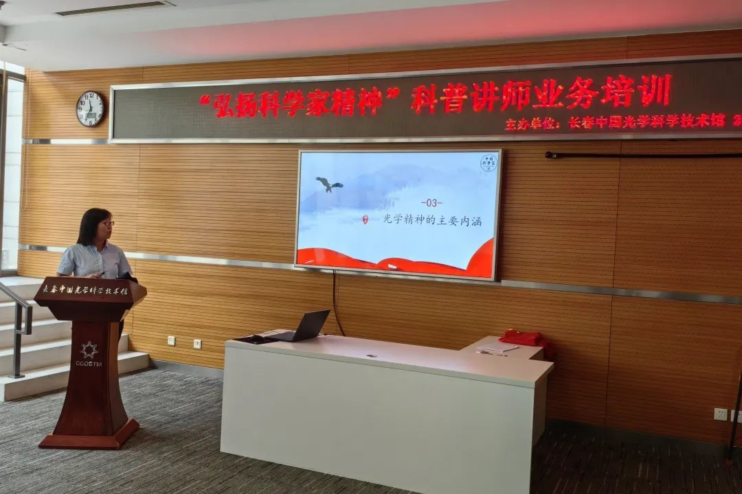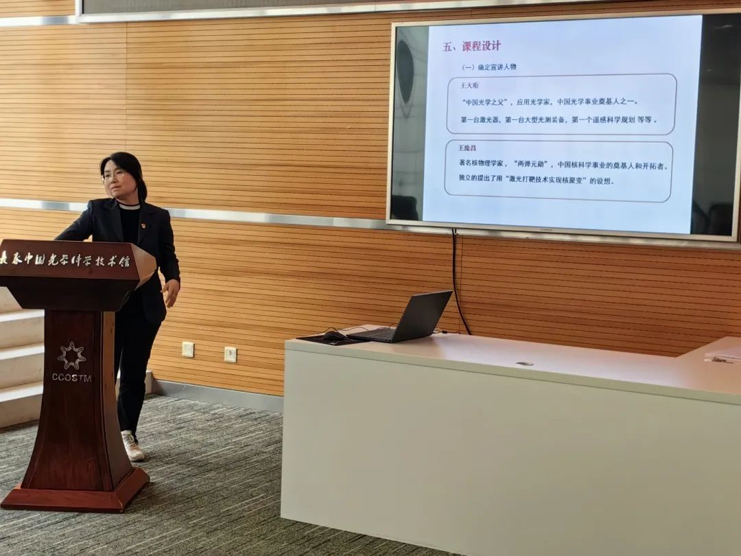 参观过后,两位经验丰富的老师在光科馆会议厅为学员们进行宣讲培训。王磊老师围绕光科馆弘扬科学家精神工作开展情况进行解读,她希望同学们多学多讲老科学家事迹,让更多人感受到老一辈科学家的精神品格与高尚情操,不断强化弘扬科学家精神重在行动的实践导向,为我国高水平科技自立自强提供强大的精神力量。赵智老师结合教学对象、教学目标、教学场地、课堂时长、课程设计五项要素为学员们进行具体指导,并建议青年宣讲员们应当精准提炼科学家精神,深度挖掘科学家背后的故事,还需要重视讲解过程的细节。