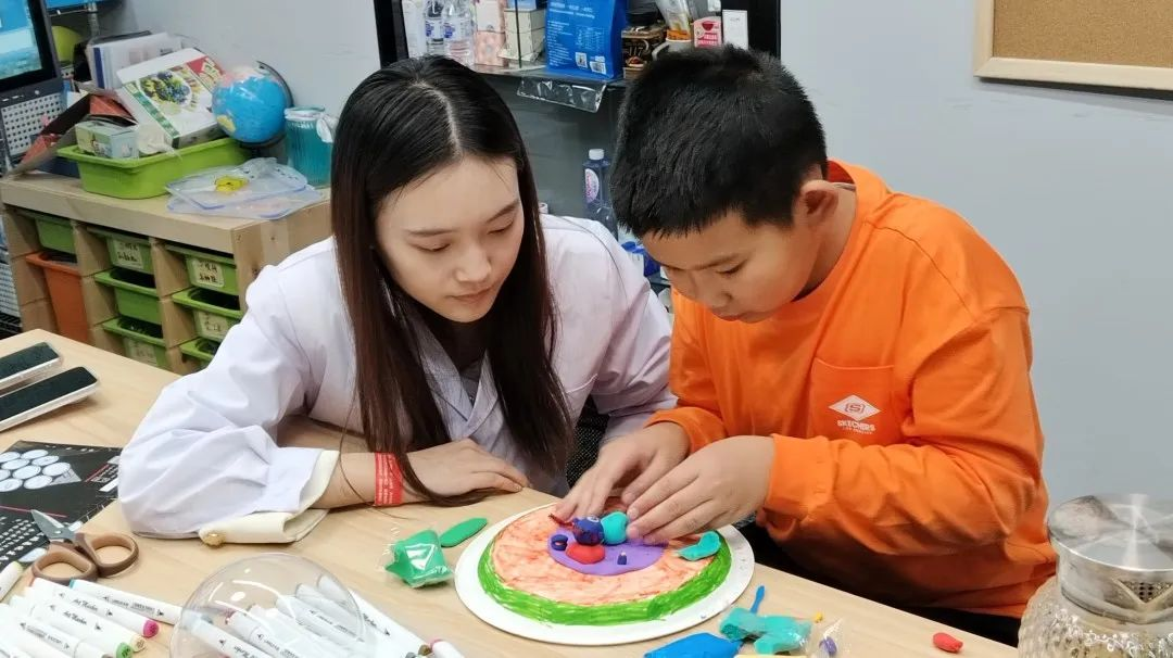 孩子们用先前活动打卡获得的小道具自制纪念品