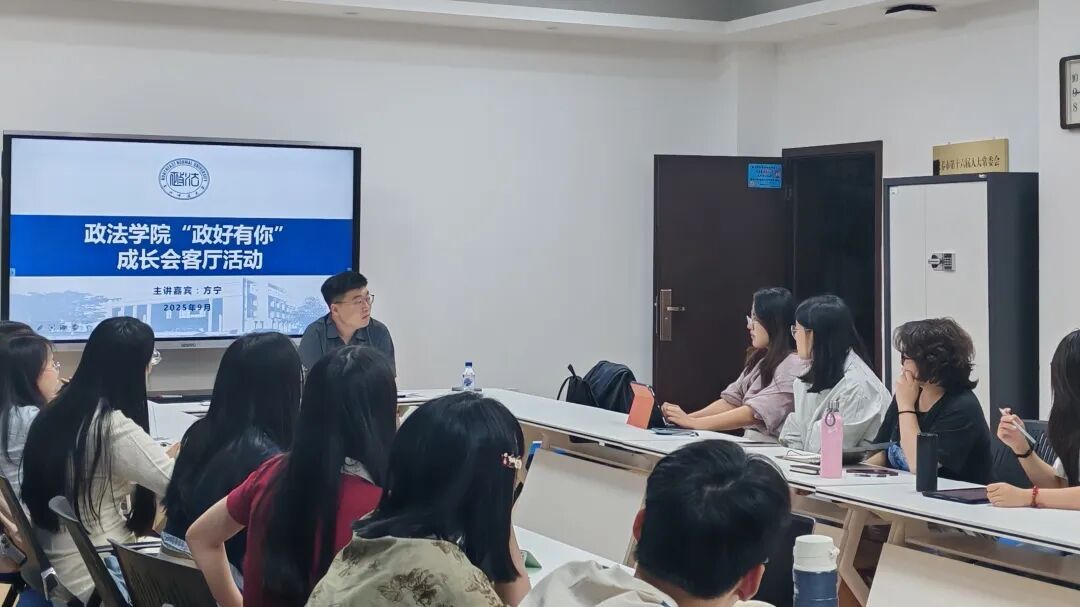 为助力学生全面成长与高质量发展,引导学生明确发展方向、增强专业自信、提升综合素养,政法学院于9月17日在二楼会议室举办“政好有你”成长会客厅第一期,本期活动嘉宾为优秀校友方宁。