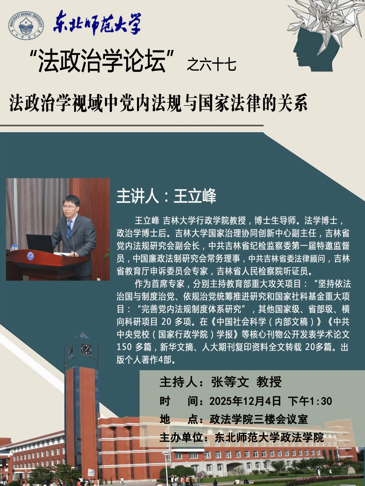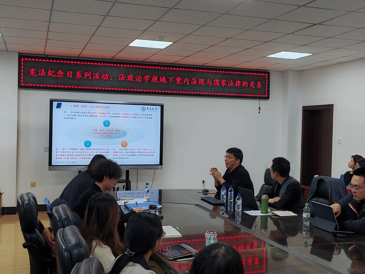 在第十二个“国家宪法日”到来之际,为深化宪法学习宣传,推动中国特色社会主义法治理论研究,2025年12月4日,学院成功举办宪法纪念日系列活动之法政治学论坛。本次论坛特邀吉林大学王立峰教授作专题报告,论坛由副院长张等文教授主持,学院40余名师生参加了论坛。